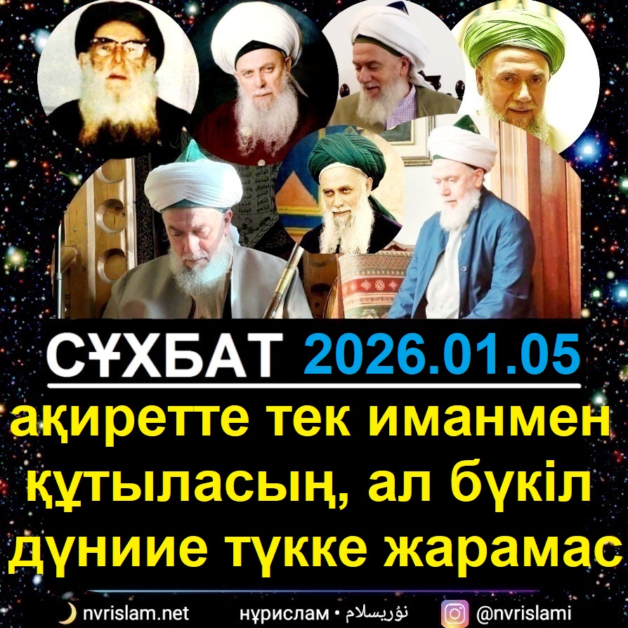 سۇحبات: اقيرەتتە يمانمەن عانا قۇتىلاسىڭ، ال بۇكىل دۇنيە تۇككە جاراماس (2026.01.05 / حيجري 1447-جىل 16-راجاب)