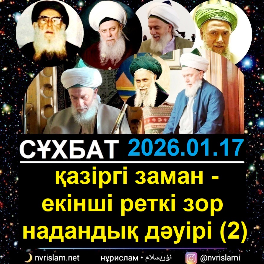 Сұхбат: сопылықта болмағандар оп-оңай шайтанның ойыншығына айналады (2026.01.15 / Хижри 1447-жыл 26-Ражаб) 2026-01-19 (10 күн) Қазақ: сұхбат