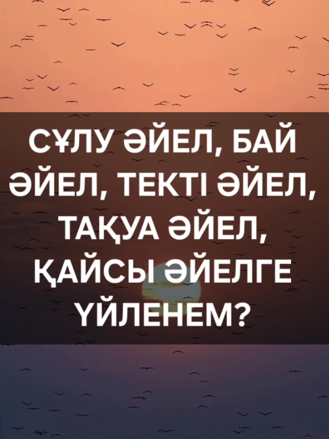 СҰЛУ ӘЙЕЛ, БАЙ ӘЙЕЛ, ТЕКТІ ӘЙЕЛ, ТАҚУА ӘЙЕЛ, ҚАЙСЫ ӘЙЕЛГЕ ҮЙЛЕНЕМ?